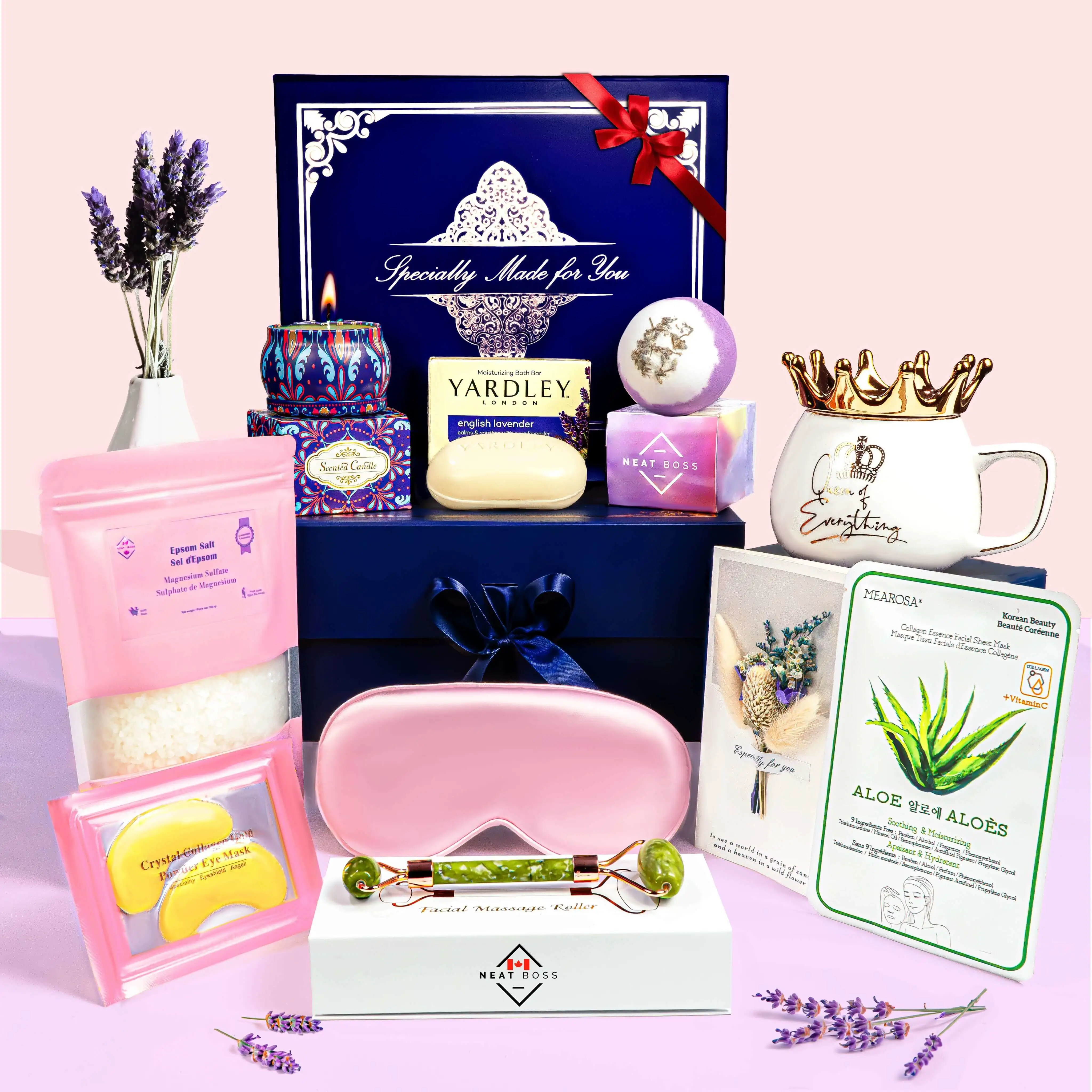 Luxury Lavender Gift Basket for Women; 10-Piece Self-Care Gift Set for Birthday, Mother’s Day, Christmas, or Any Other Occasions