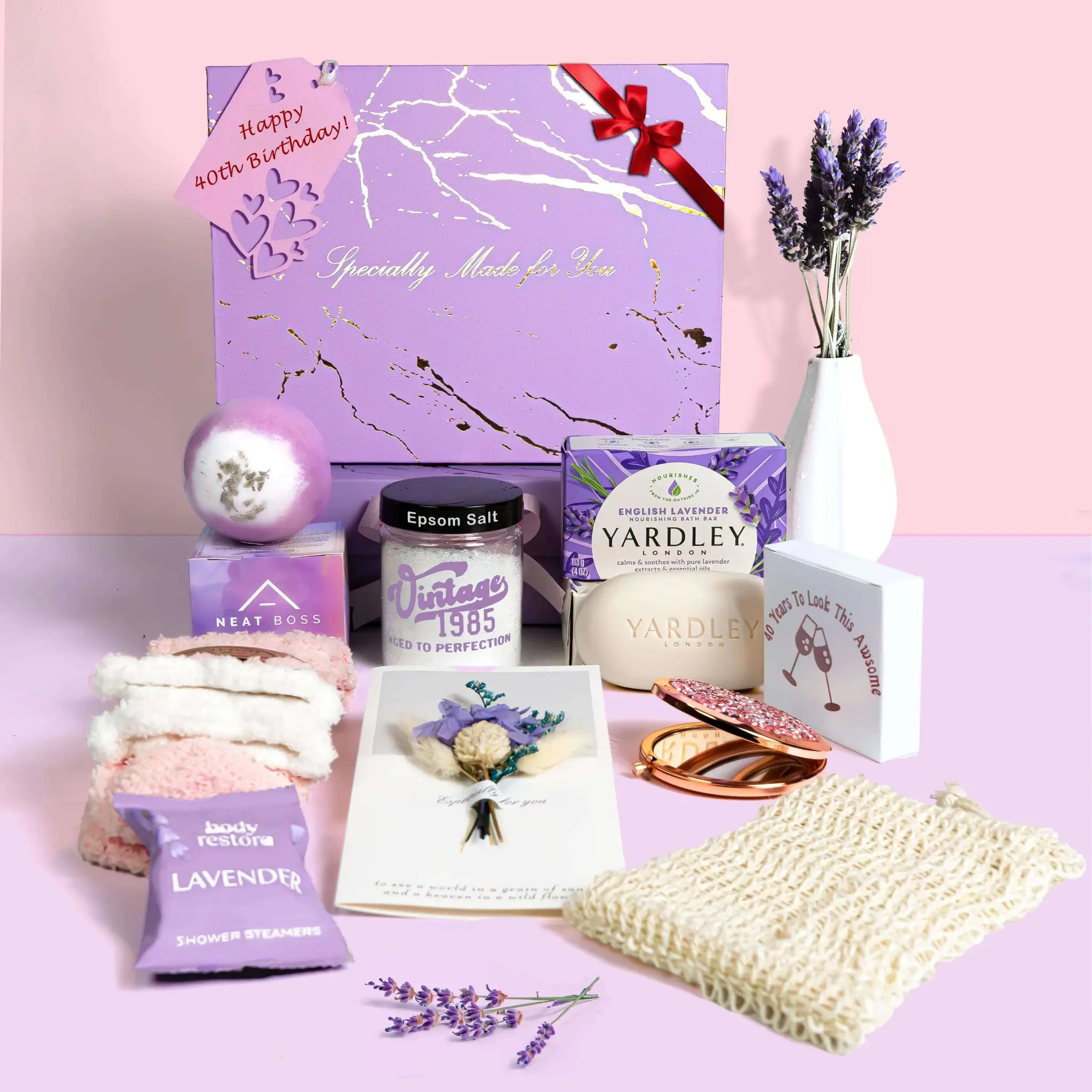 40th Birthday Gift for Women - Luxurious 9 piece Lavender Scented Spa Set