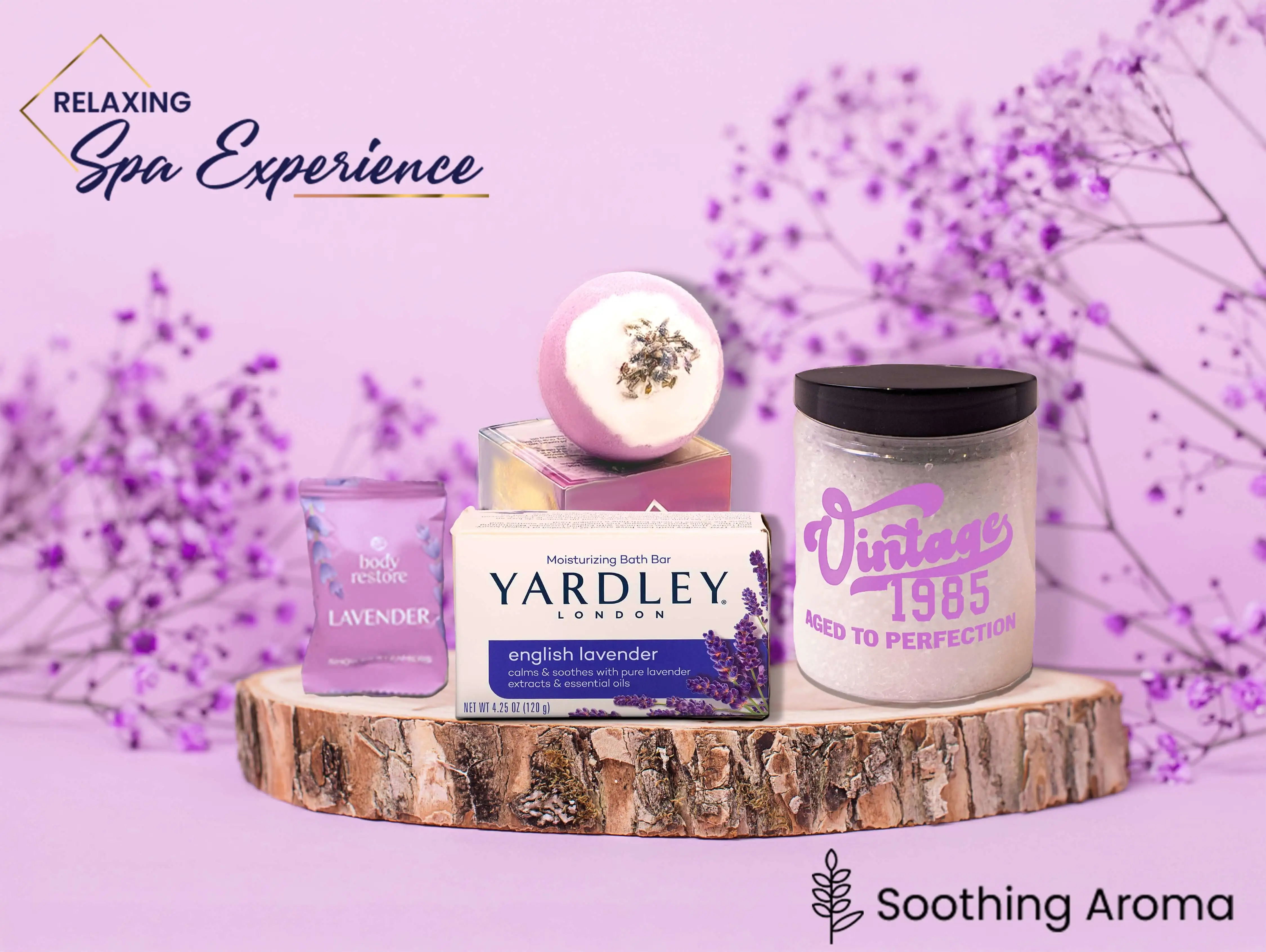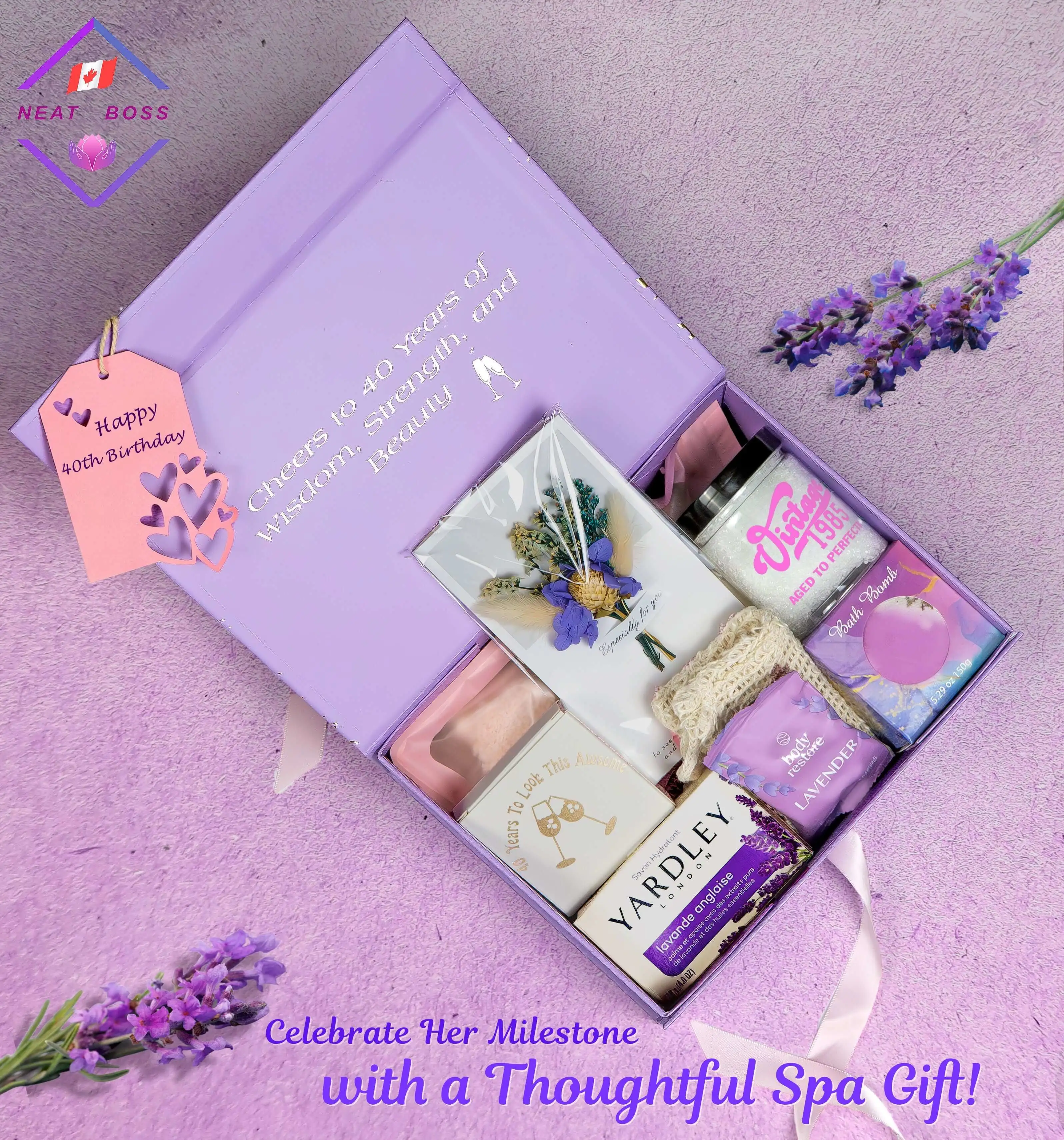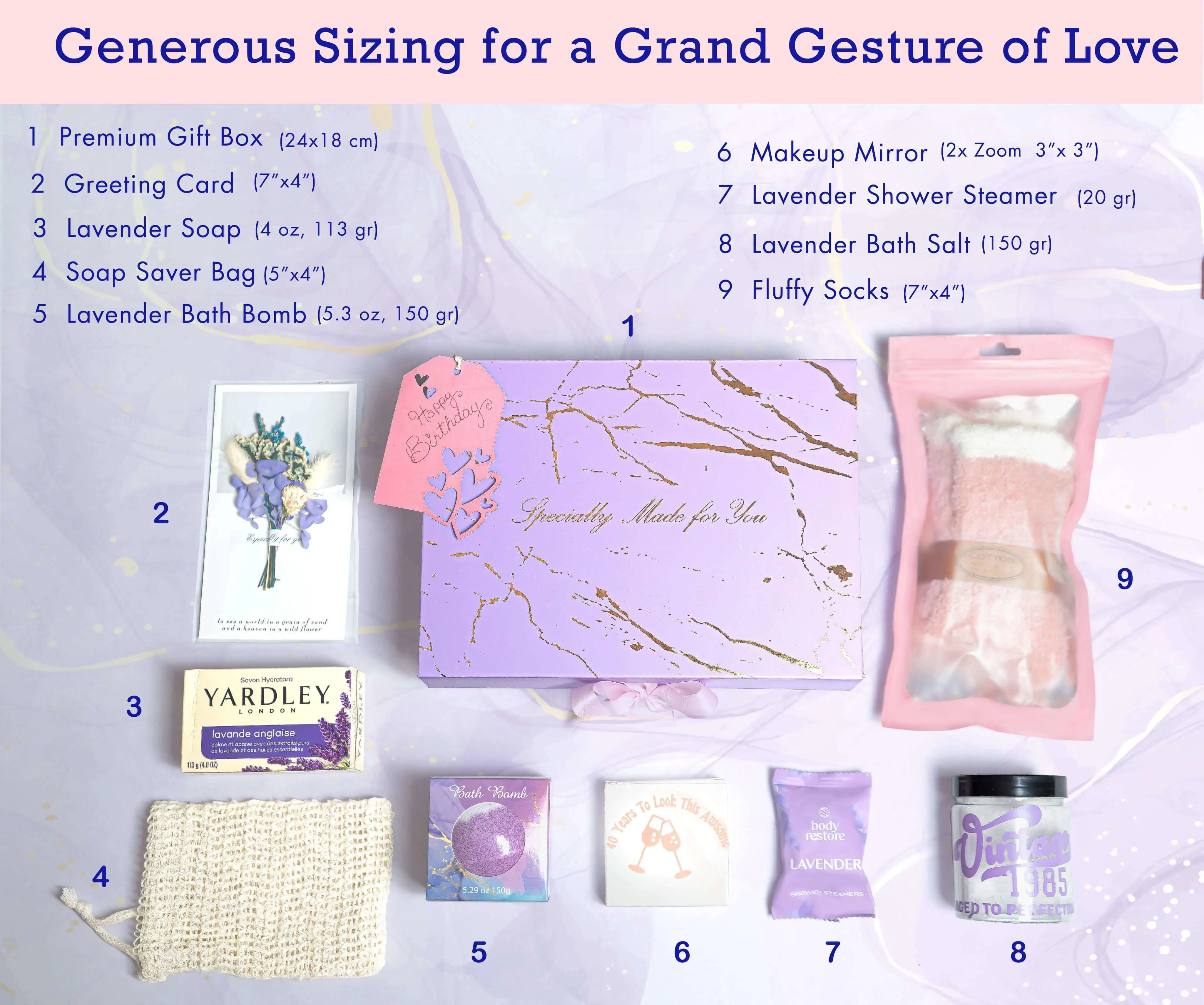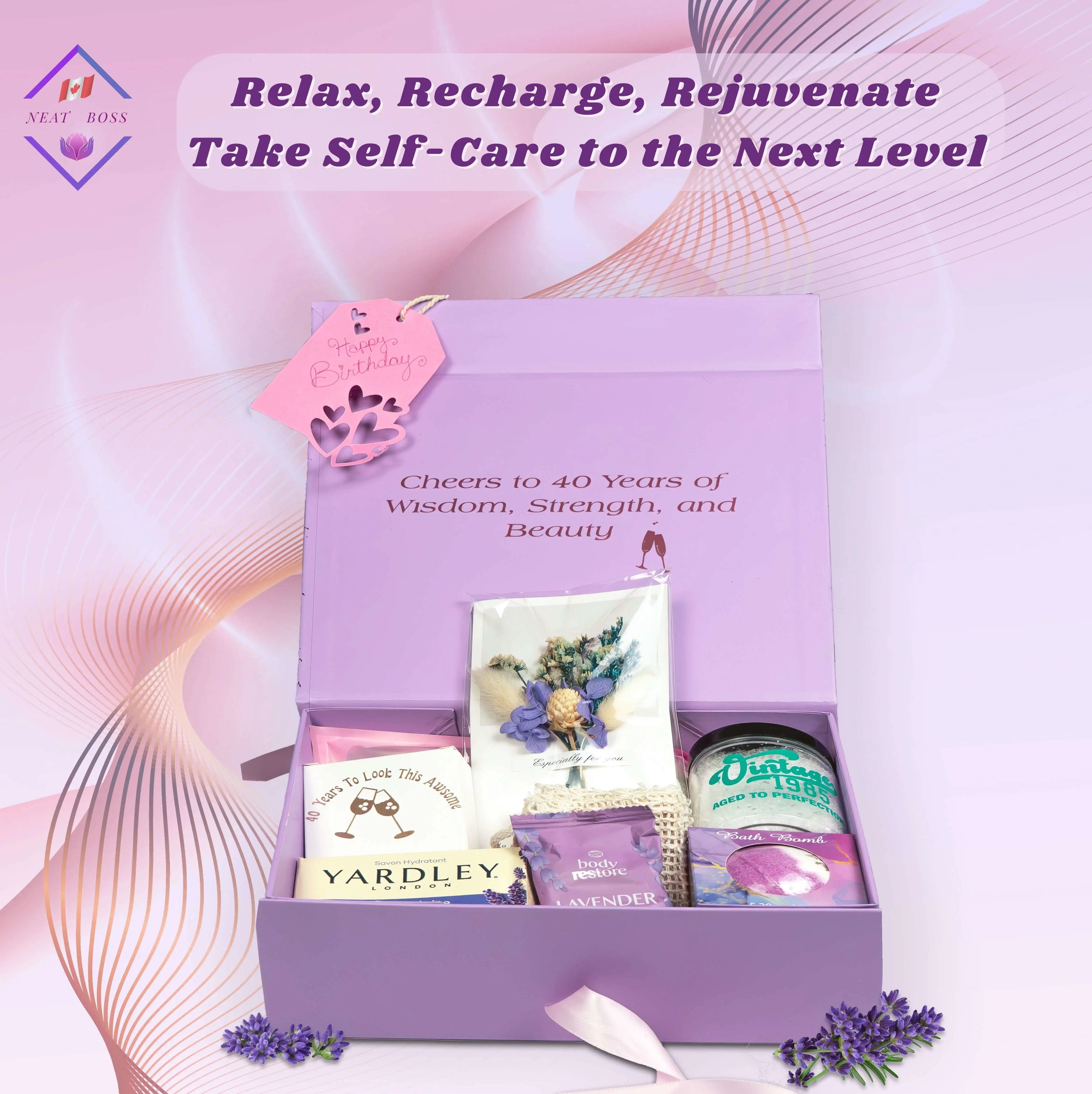 40th Birthday Gift for Women - Luxurious 9 piece Lavender Scented Spa Set