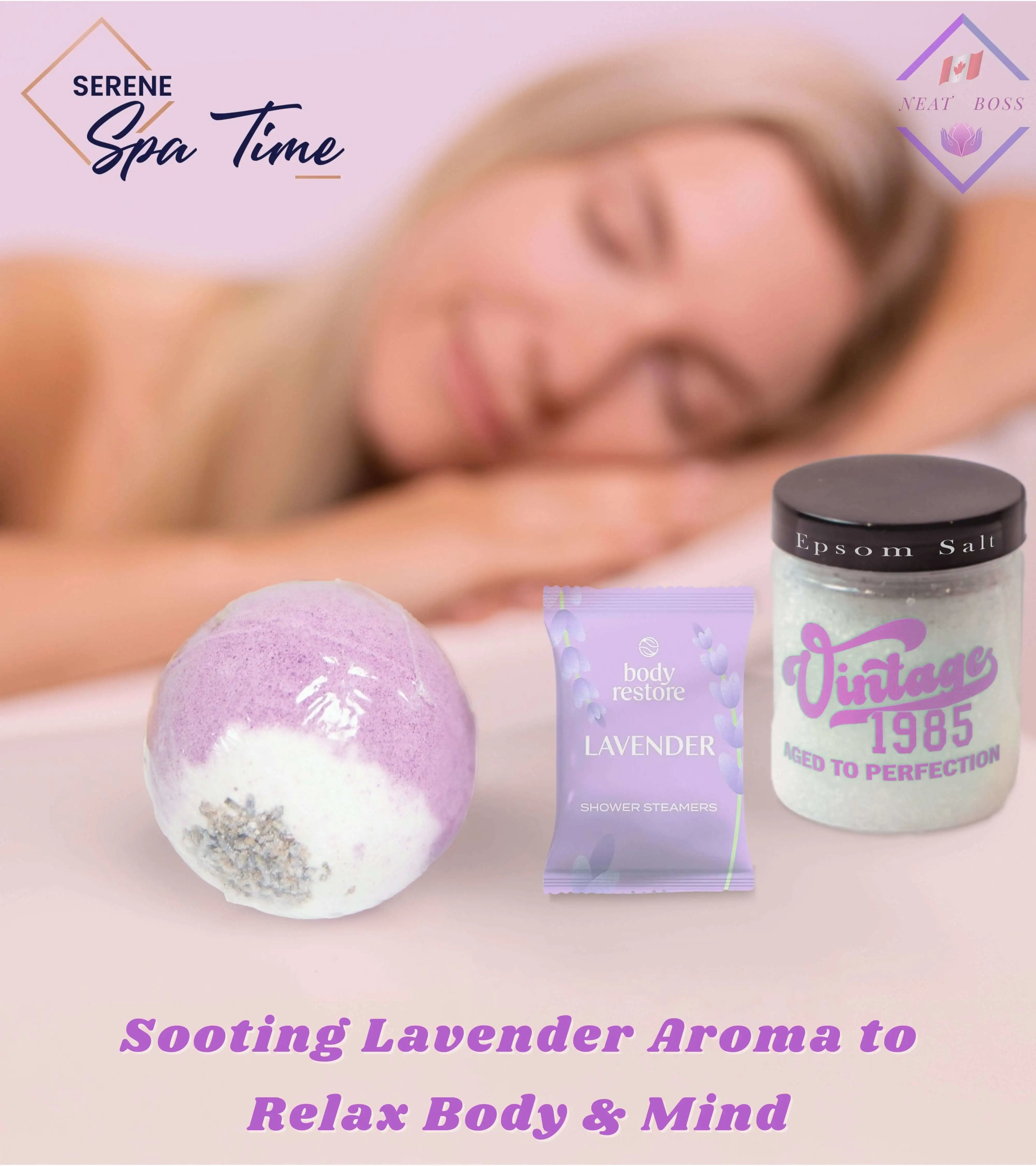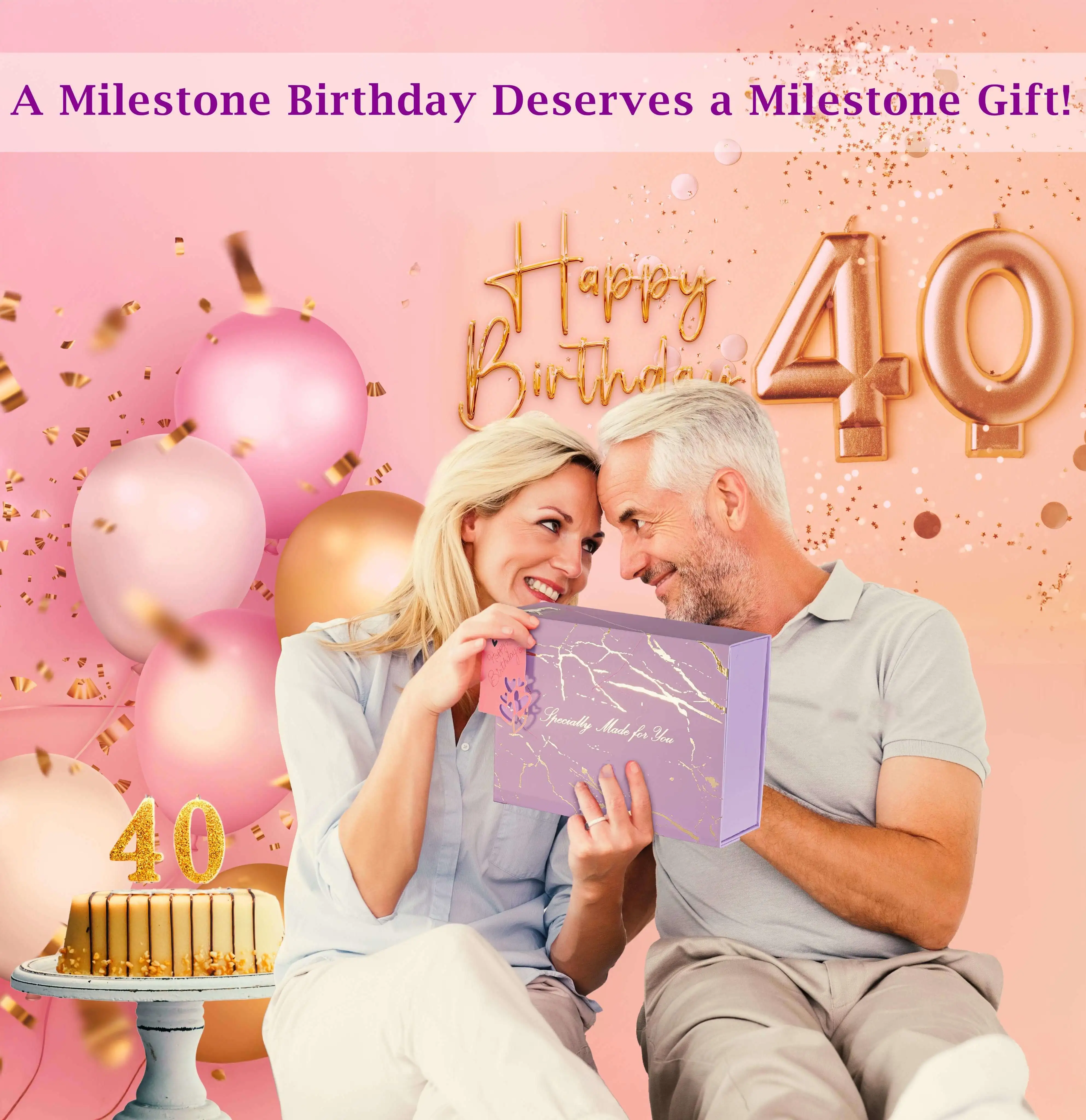 Celebrate a milestone birthday in style with our 40th Birthday Gift for Women - 9 piece Lavender Scented Spa Set. This luxurious set is designed to pamper and indulge, making it the perfect gift for any woman turning 40. Each piece in the set is carefully crafted to provide a spa-like experience at home, complete with soothing lavender scents and plush materials. Whether it's a relaxing bath, a rejuvenating face mask, or a peaceful night's sleep, this set has everything needed to unwind and feel like royalty. Make her 40th birthday one to remember with this thoughtful and indulgent gift.